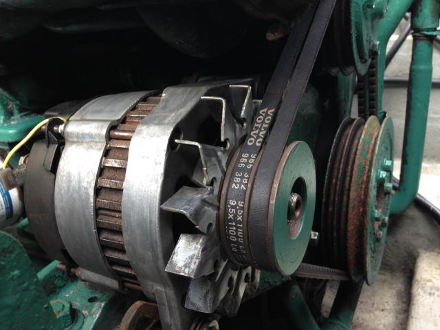 昨年11月頃、左舷オルタネータが壊れオークションで①のオルタネータを購入交換しましたが、その後アフタークーラーコアから海水漏れのために常時船底に海水が溜まり、その海水が蒸発して①オルタネータを腐食するようになっていたようで、段々と充電しなくなりました。