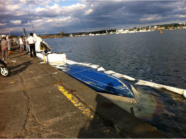 IMG_1574台風15号の直撃を受け、多くの船が沈没・大破してしまいました。今年3月11日の東日本大震災とは全く比較するようなものではありませんが、多くのオーナーが廃船を余儀なくされました。