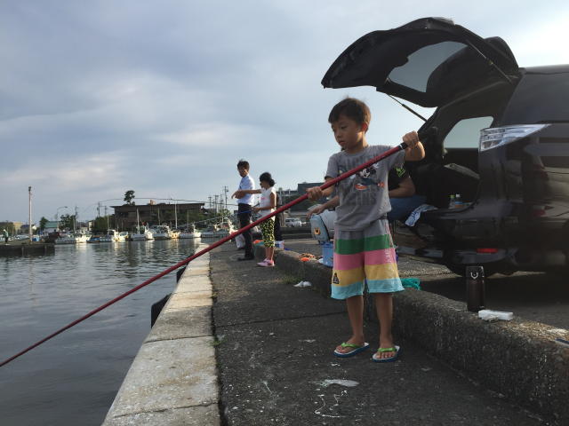 2015年9月5日 土曜日 2人の孫を連れて、家内と4人で16時ころから2時間くらい釣りに行って来ました。