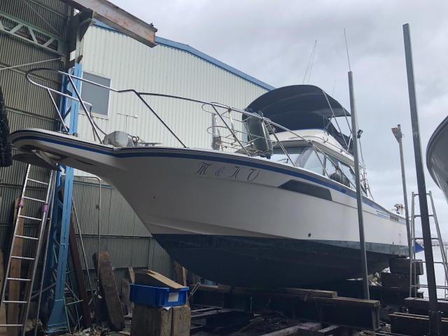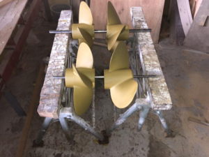 今日も夕刻見に行って来ました。昨日、ギヤオイルの交換をして貰いました。ドライブシャフトのOリングに不良が少しあったようですが来年に持ち越しとしました。ペラは綺麗に清掃してもらい下塗りをしてもらい明日ペラクリンを塗って貰う予定です。