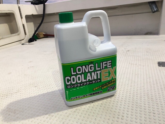 今日は、両舷エンジンのクーラントを入れ替えして来ました。