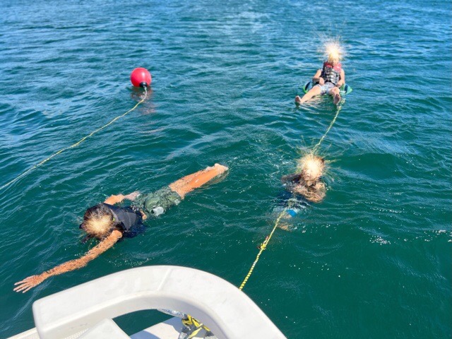 約1時間くらいは海水浴が楽しめました。孫たちは、船からバク宙や飛び込みやって大はしゃぎでした。そうですよね、昔はプールで私たちも飛び込みや飛び降りしました、今はプールでの飛び込みは厳禁だそうで。