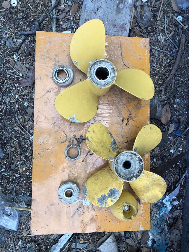 昨日外したペラの写真です。結構プライマー剥がれています。左舷