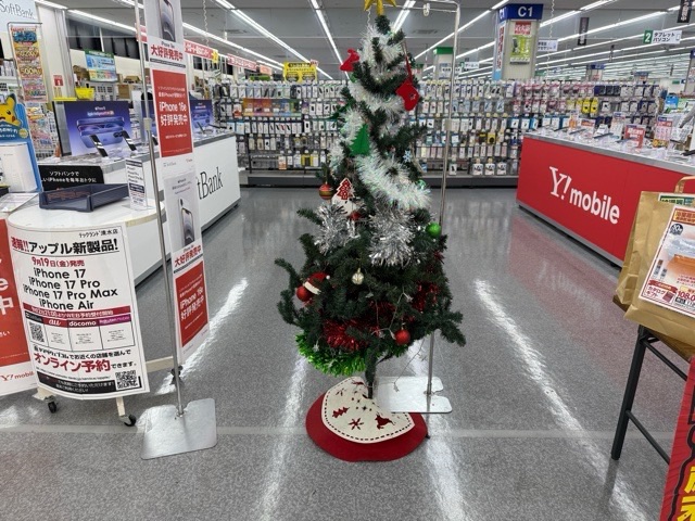 帰りにヤマダ電機に4Kのテレビを見に行ったら、クリスマスツリーが飾られていました。
