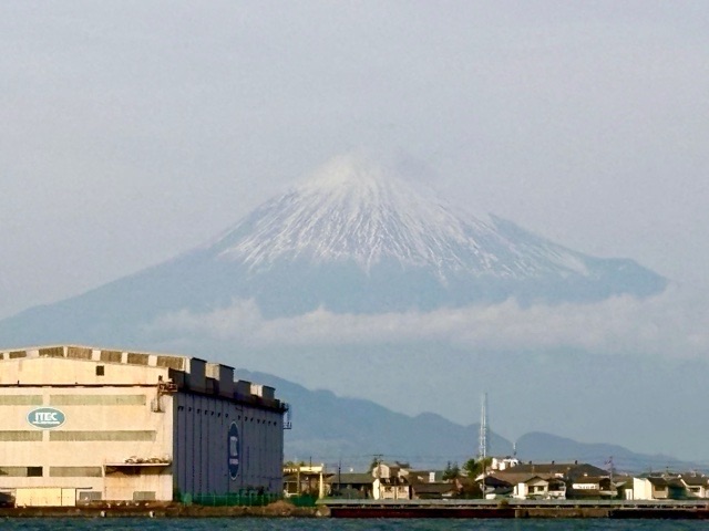 外気温23℃、春がすみがかかって富士山も霞んで見えます。