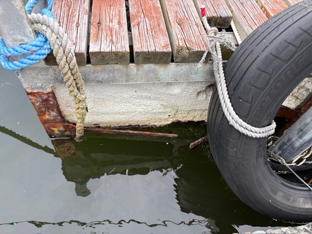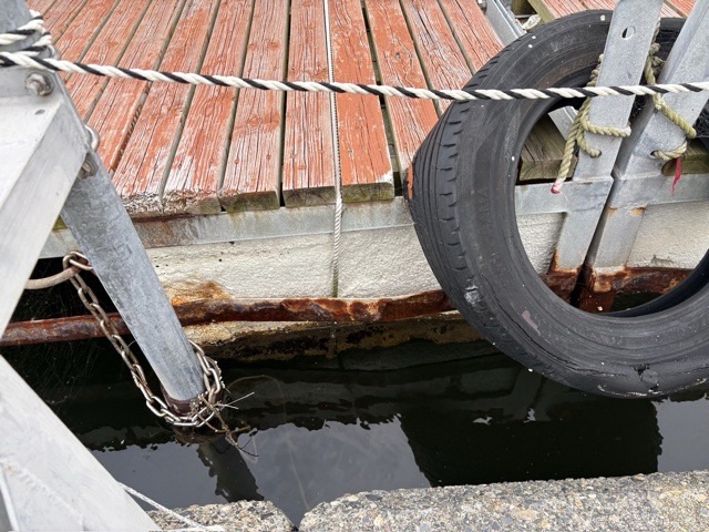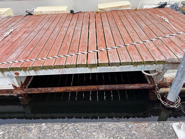 2012年から約13年間、上板とパイプの交換などの応急処置は暫時したものの、元々設計ミスがある桟橋を作り直さず、今回も同じ製作会社に見積もりを取って、ただ金が無いので作り直せないとの説明。